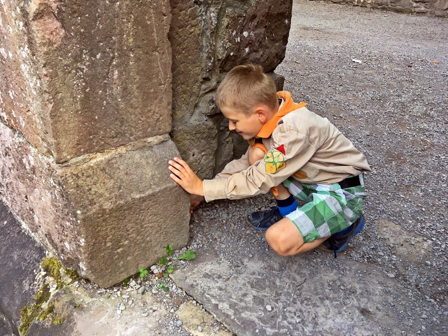 Um den Fall zu lösen, teilten wir uns zunächst in zwei Mannschaften auf. Das erste Team ging direkt zum Tatort und untersuchte ihn. Und tatsächlich fiel es einem der Pfadfinder auf: "Da sind Fußspuren."